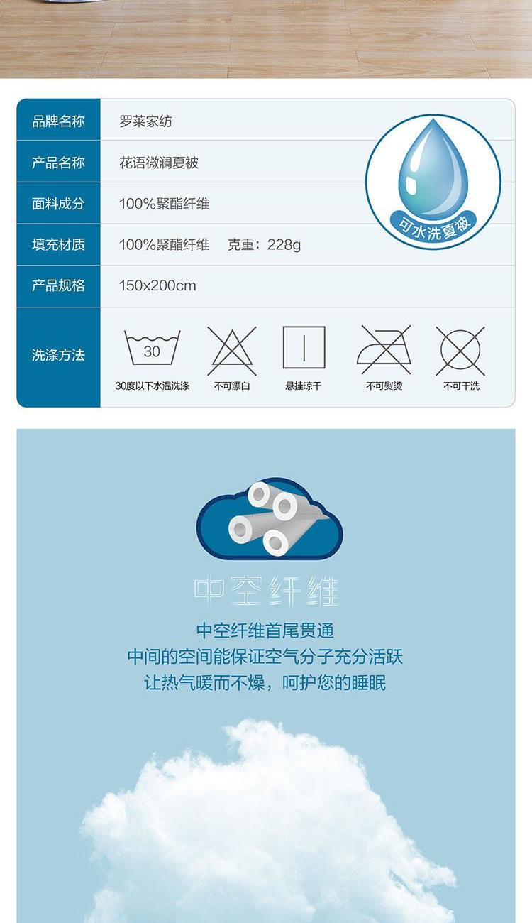 罗莱馨柔A类大豆纤维水洗夏被-花语微澜150*200cm