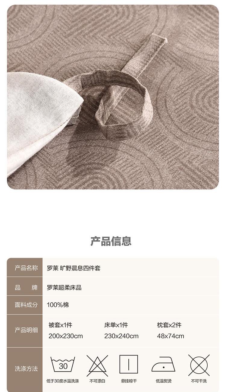 旷野为序,编织睡眠的诗。大地色系床品如旷野肌理,枕卧间,似与风、与自由同栖。素简线条是时光轻描的辙,将喧嚣滤净,只剩旷野般的静谧,拥你跌入无界清梦 。