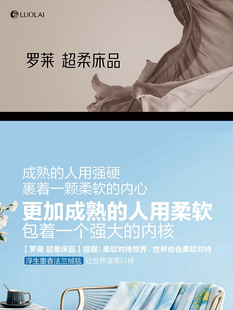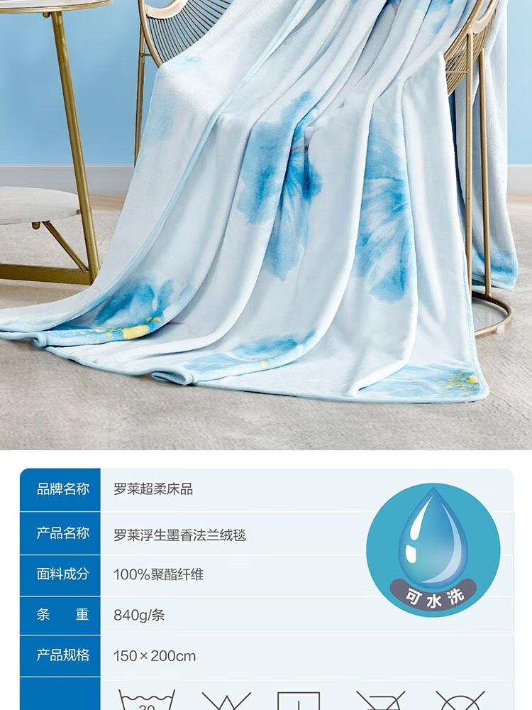 罗莱浮生墨香法兰绒毯150×200cm