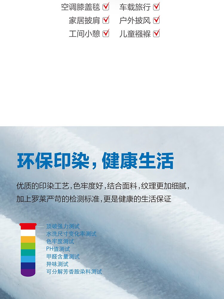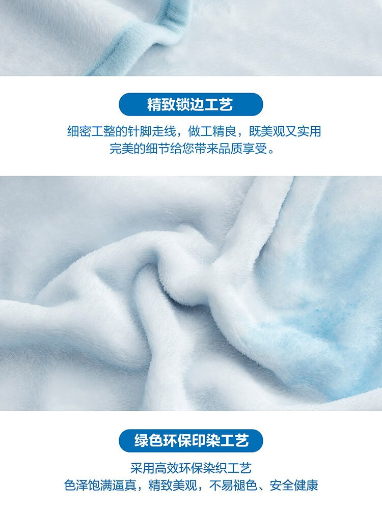 "面料材质:聚酯纤维 规格尺寸:150×200cm×280GSM 产品条重:840g 外箱尺寸: 42×37×76cm(参考) "