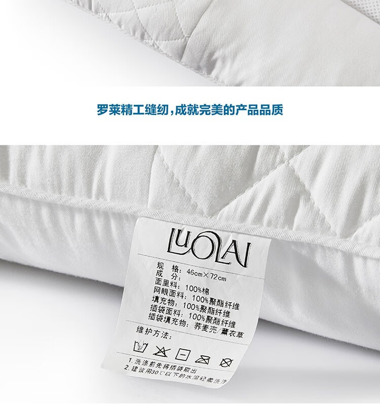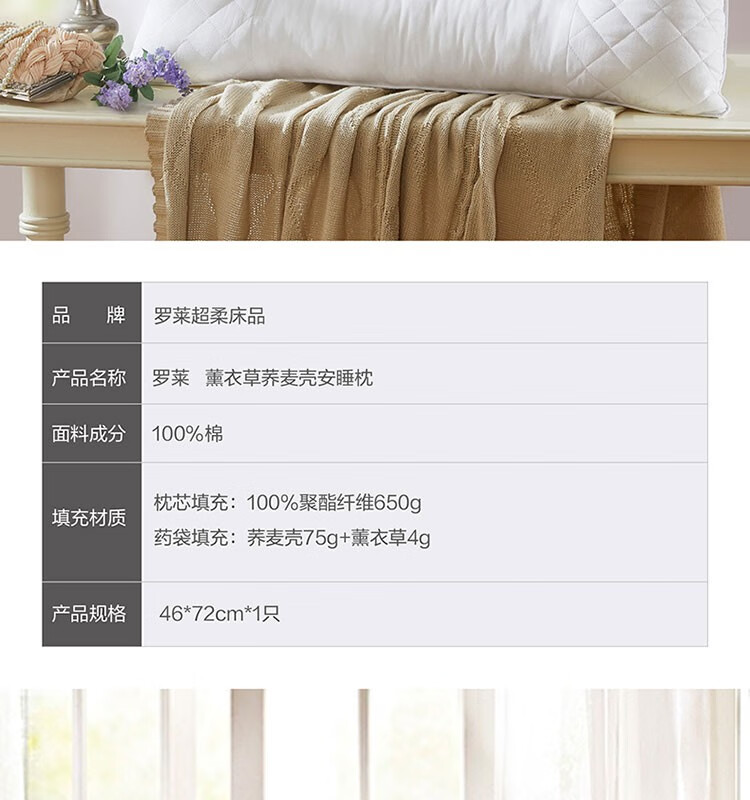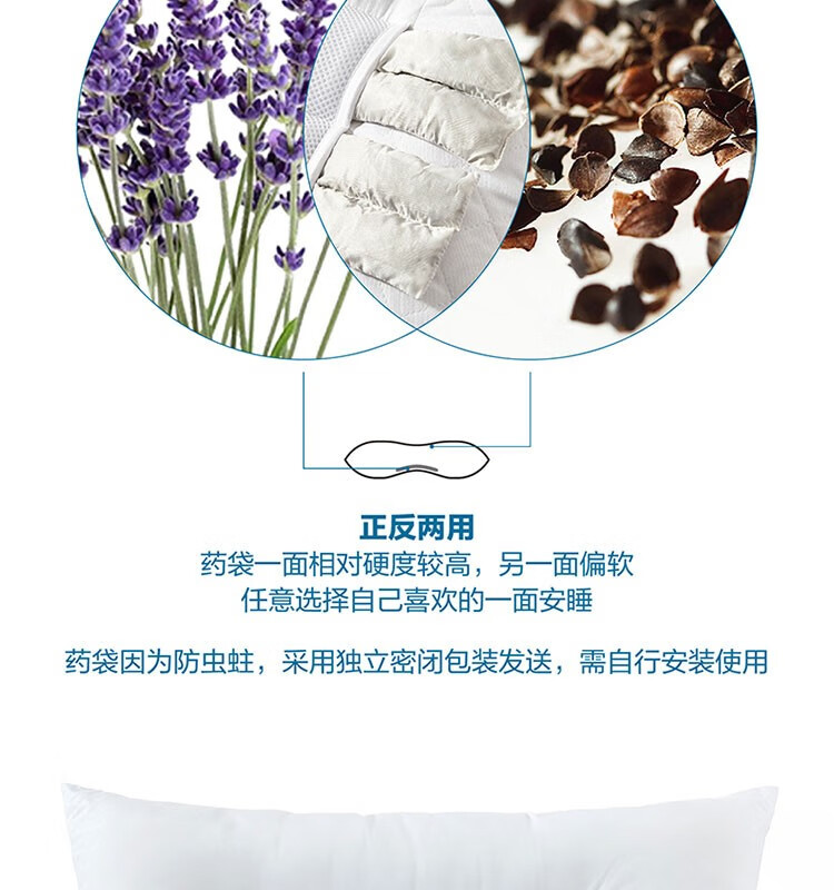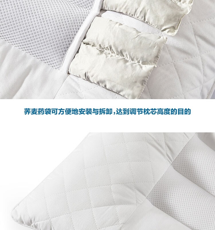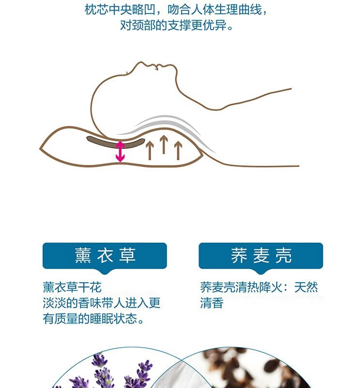 面料材质:128*68漂白(喷气) 650g仪征6D有硅+荞麦壳75g+薰衣草4g 面料采用纯棉,亲肤柔软,透气吸汗; 选用荞麦壳为填充料,具有防潮透气冬暖夏凉的特征,软硬适中,通风透气,冬暖夏凉,清热除疲,有益头部血液循环; 加薰衣草干花,薰衣草有安神助眠的效果,淡淡的香味带人进入更深更有质量的睡眠状态。