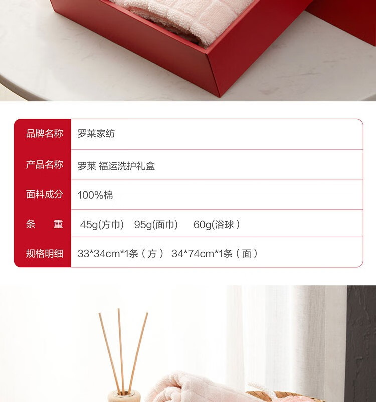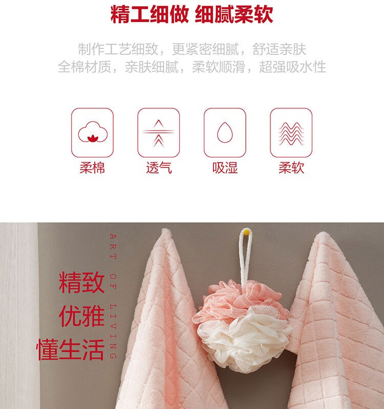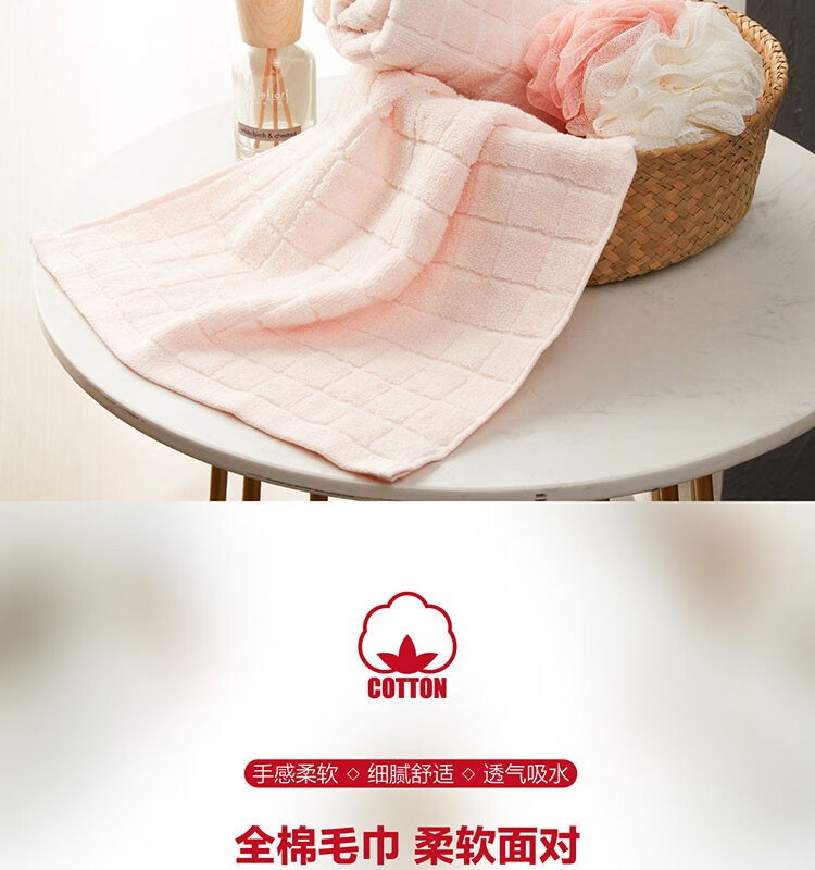 面料材质:毛巾纯棉 浴球:聚乙烯(PE) 规格尺寸:33×34cm 1条 34×74cm 1条 浴球 1个 产品条重:45/95/60g 外包装: 53×42×62cm 毛巾采用低捻度优质纯棉纱线,毛圈蓬松丰厚,柔软细腻,具有更强吸水性和透气性,纯色立体方形提花设计,产生凹凸有致的浮雕效果