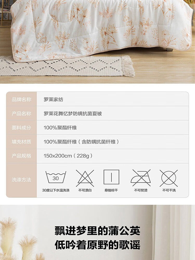 罗莱花舞忆梦防螨夏被150*200cm