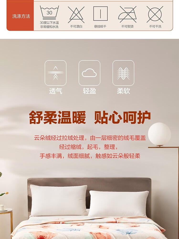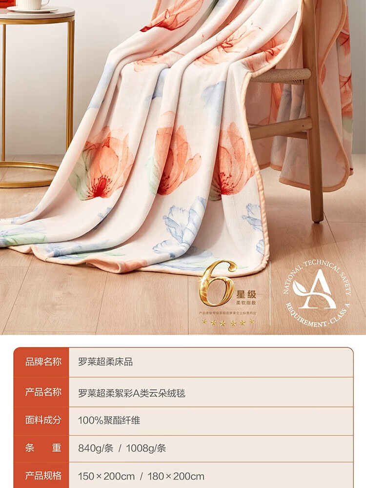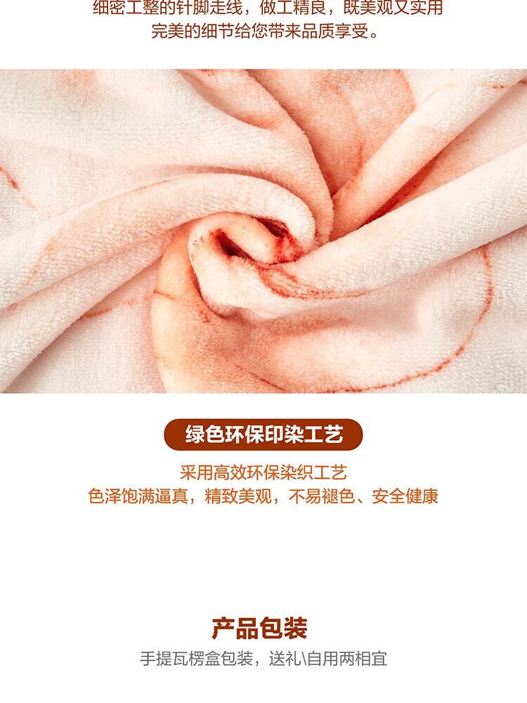 面料材质:聚酯纤维 规格尺寸:150×200cm×280GSM 产品条重:840g 采用超细纤维,具有良好的排湿透气性,绒毛纤长,手感更柔软细腻,保暖性好,光泽度高;