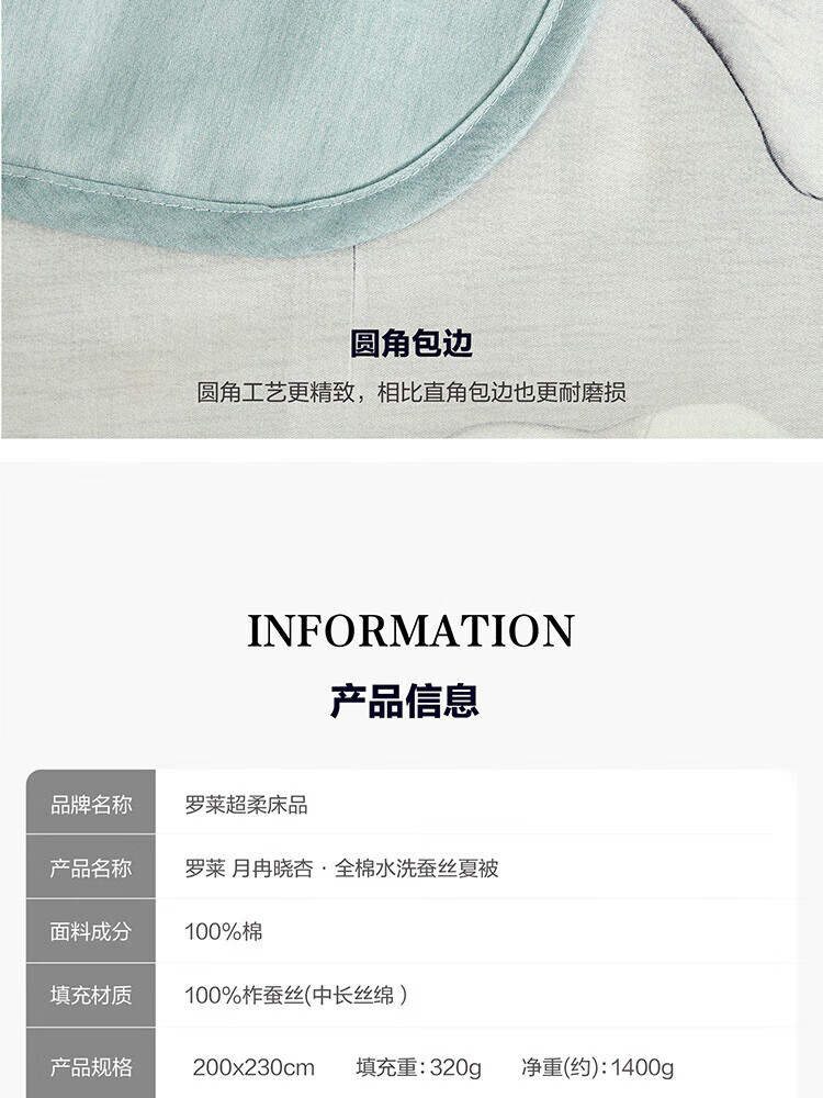 罗莱月冉晓杏全棉水洗蚕丝夏被200*230cm